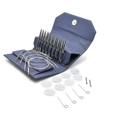 Interchangeable Circular Needle Sets offer you a collection of tips and cords that allow you to tackle all sizes of knitting projects. These sets are great for the new knitter, as a way to ensure you have all the pieces you need for your next project AND for the experienced knitter who loves new tools and organization. Most come with handsome organizers that keep your needles and cords together and nicely organized in one spot, making it a snap to start that next new project. Interchangeable Circular Needle Sets are perfect for projects like sweaters, socks, blankets, and more!