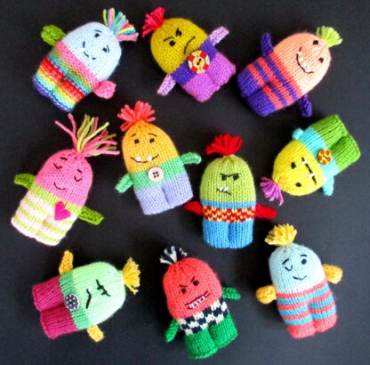Very quick and easy to make from short lengths of coloured DK yarn, they are perfect for new knitters. Each monster has its own character. It can be happy, sad, angry and even romantic! It can have teeth or be toothless! Children will love them and they make cute pocket pals, party prizes, keyrings, fund raisers etc. Use the basic pattern and make your monster striped or plain. I think you'll have fun with them.