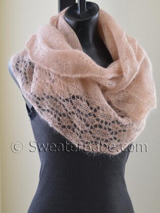 Slightly crescent-shaped design gives this shawl/scarf an interesting shape that will allow it to be easily worn in so many different ways. It can be effortlessly worn as a traditional scarf as the resulting lace fabric is so supple.