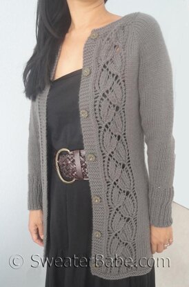 Classic shaping for a well-fitting result was a given. The lace panels in the front and wider back lace panel are signature SweaterBabe (I must have lace and/or cables or I’m not a happy camper, er. . knitter!).
