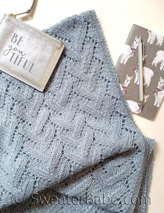 The lace pattern is charted and written out and consists of basic decreases and yarnovers. The result is a lovely all over lace design with the look of gently drooping twigs.