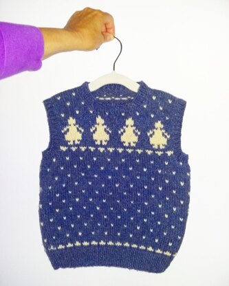 These children’s Norwegian style vests are knit using worsted wt yarn. The pattern includes the instructions and graphs for BOTH the Heart and the Doll vests. I suggest going up a size to accommodate a growing child.
