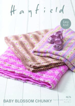 Any kid is sure to love these striped and patterned Blankets from Hayfield! The pattern includes directions for 3 different blankets: stockinette stitch, garter or wave pattern. All are made using Baby Blossom Chunky, a self-patterning yarn that's super-soft and also machine-washable! What could be better?