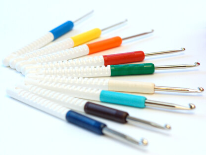 The Skacel addiColours Crochet Hook Set includes 9 addi® color-coded crochet hooks, in an easy-to-store travel case for ease of organization. The set includes addi’s® color-coded hooks in metric sizes 2.0 (A), 2.5 (B), 3.0 (C), 3.5 (E), 4.0 (F), 4.5 (G), 5.0 (H), 5.5 (I), and 6.0mm (J). These are perfect for those seeking an ergonomic hook! Made in Germany