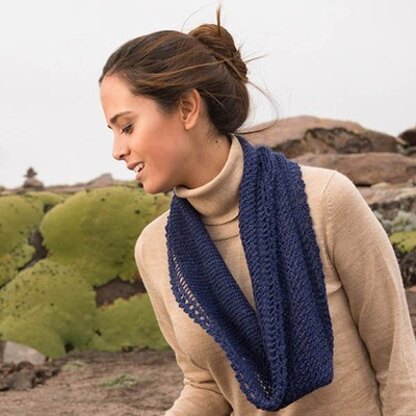 The Delia Cowl from AMANO sports both garter stitch and a lace edging, giving it lovely texture. Delia Cowl is knit flat end to end, and then the cast-on and bind-off are sewn together. Made in Puna, a super-soft 100% baby alpaca yarn that comes in beautifully heathered shades. Note: Lace pattern is written only.