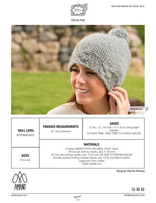 AMANO Gloria Hat PDF is a Knitting pattern by Martha Wissing, available as a Downloadable PDF. Super fun to make, this pattern could be your next masterpiece!