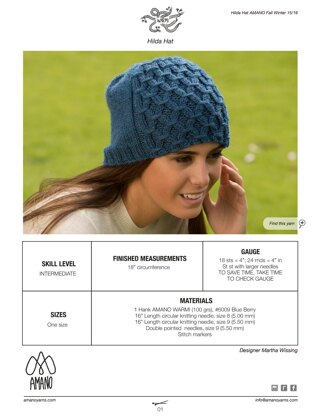 AMANO Hilda Hat PDF is a Knitting pattern by Martha Wissing, available as a Downloadable PDF. Super fun to make, this pattern could be your next masterpiece!