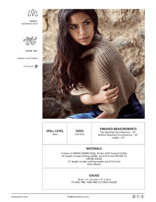 AMANO Lazuna Cape PDF is a Knitting pattern by Laura Zukaite, available as a Downloadable PDF. Super fun to make, this pattern could be your next masterpiece!