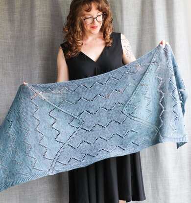 A luxurious rectangular shawl with an unusual construction, Amphidrome has chevron lace forming concentric ripples, radiating out from the centre of this dreamy wrap. With an easy-to-wear rectangular shape, this is one of those Really Useful Knits; a light blanket when you need it, a fancy shawl when you prefer it, or a warm scarf for layering up over all the knits in winter.