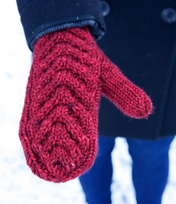 These mittens are luxuriously soft, squishy, and warm. A single distinct cable travels from the generous long cuffs to fingertips. Knit in a gourmet alpaca blend yarn, this project is outrageously satisfying both to knit and to wear!