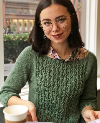Notes Body and sleeves are worked in the round from the bottom up to the armholes, then joined to work yoke in the round. Body is worked straight without waist shaping. Raglan sleeve caps are shaped using short rows. Instructions for cable stitch pattern are given in chart form.