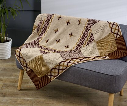 Inspired by the delightful Arabesque art form, this beautiful supersoft blanket features a play of intertwining branches, twists and turns created through textured stitch patterns and colourwork.