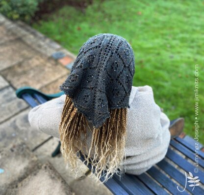 A delightful arrangement of diamond lace and beads makes this a practical headscarf. It is knitted from the top down with beads that are applied with a bead hook (Optional: Pre-thread your beads, if preferred).