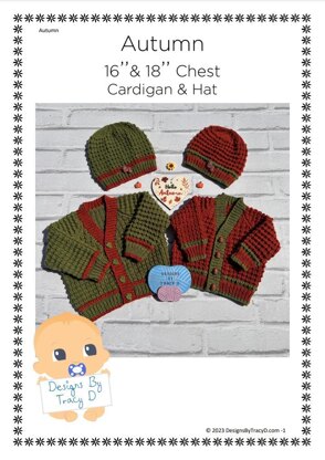 Autumn cardigan and hat baby knitting pattern 16 inch & 18 inch chest sizes