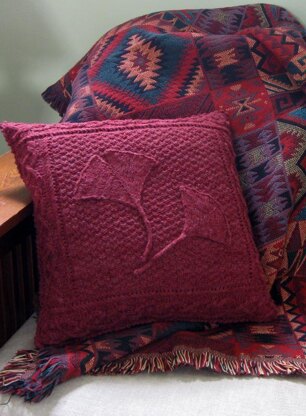 The leaves can be worked in the same or different colors. Choose from a maple leave, oak leaf (not pictured here), or gingko leaves. Hand painted yarn in a contrasting color will give a more autumnal effect.