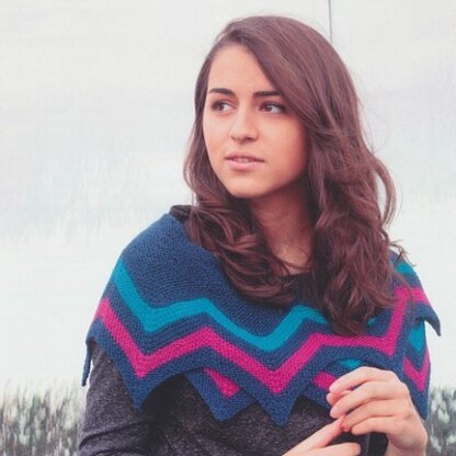 Inspired by Sheffield railway station in England, known at times as Pond Street station, a shawlette of the same name from Baa Ram Ewe is knitted in three colours of Titus. The roof line of the station is represented in a chevron pattern in the border of the shawlette. Short rows aid the transition to the body of the shawl, which is shaped into a shallow crescent with more short rows. No wrapping or picking up of wraps is required, however, as all short rows are completed with easy decrease stitches.