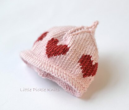 Knit this adorable Little Heart pixie beanie for a little baby girl that you love.
