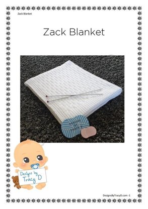 This is a blanket pattern which will match my 'Zack' baby knitting pattern. When finished it measures approx 24" x 30" but it can be made to the required length. I have used King Cole Cherished DK yarn.