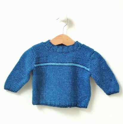 Rocket Clothing London collection by Linda Whaley. This classic baby boy crew has a button opening across one shoulder for easy dressing. Knit this baby sweater in any DK yarn tht works to a tension of 22sts and 28 rows to 10cms (4in).