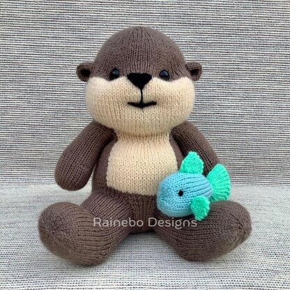 This adorable Baby Otter is knit in the round, (Intermediate Level), using Magic Loop (or double pointed needles). It is approx. 9” tall (sitting) and is created using #3-light wt. (DK wt.) yarn. Intarsia is used to place the contrast color on the head and body front. Needles needed: size 3 (3.25mm) 32” Circular Knitting Needles (if using Magic Loop). The legs, body, arms, and head are all knit on as you work along. Little fish friend directions are included. APPROX. YARDAGE…#3-Light Wt. (DK wt.)