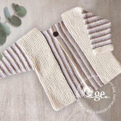 This cardigan is knitted from side to side, commencing at sleeve. A very easy pattern that would be appropriate for both boys and girls so you can get knitting before the baby’s gender is known. The garter stitch creates a comfy, stretchy fabric that makes sizing more flexible so it can be worn for more than just a few weeks. The striping sequence is just enough to be interesting. This project works up quickly and does not require constant attention. Very little sewing involved. Comes with picture schematic showing how this garment is constructed.
