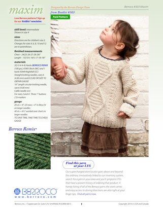 Berroco 303 Maxim PDF is a Knitting pattern by Berroco, available as a Downloadable PDF. Super fun to make, this pattern could be your next masterpiece!