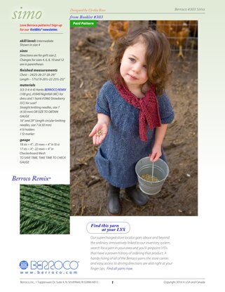 Berroco 303 Simo PDF is a Knitting pattern by Cirilia Rose, available as a Downloadable PDF. Super fun to make, this pattern could be your next masterpiece!