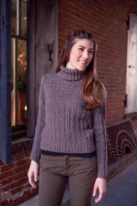 A beautiful combination of knit and purl textures enhances Berroco Gertie, a close-fitting turtleneck pullover knit in Remix. Knit flat in pieces and seamed, this pullover is a cool-weather wardrobe staple. Perfect for anyone who can't wear wool, Gertie has classic gansey texture in a wool-free yarn. Texture patterns are written out only.