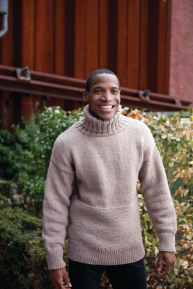 Berroco Lance is a classic pullover knit in a drop-shoulder style with garter stitch in the lower body for added interest. This bottom-up pullover will knit up quickly in Vintage Chunky, and the cozy turtleneck will keep out the winter chill. Sweater is knit flat in pieces and seamed with the turtleneck knit in the round after seaming.