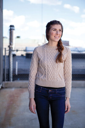 Berroco Retta is a classic fisherman’s sweater that's been updated with a feminine, cropped silhouette, but the beautiful traditional stitch textures remain the same. Knit in Berroco Vintage yarn, this cabled sweater is machine washable and can be made in many different colors! Retta is knit flat in pieces from the bottom up and seamed. Cable patterns are charted only.