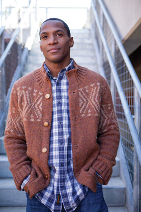 Tonal colorwork adds subtle interest to Berroco Wist. This cozy long-sleeved cardigan with double-layered buttonbands and ribbed edgings is made from Berroco Ultra Alpaca yarn, which is available in a great range of colors - pick the combination best suited to you or your favorite guy. Wist is knit flat in pieces from the bottom up and seamed. Colorwork patterns are charted only.