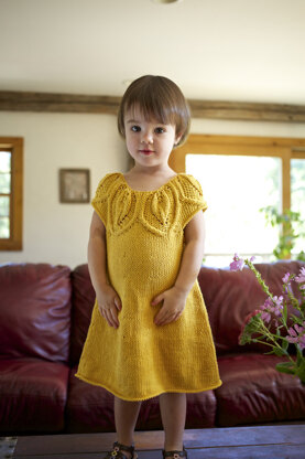 Berroco’s Bilberry is knitted from the top down with a yoke adorned with leaves, influenced by Norah Gaughan’s fabulous cable pattern stitches. A seamless knit, this A-line dress can easily transition to a winter layer over leggings and a long sleeve tee. Fun to knit and easy to care for in Modern Cotton, Bilberry is a dynamite project to knit for little ones! Cable pattern is charted only.