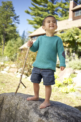 For the little professor in your life, Ptolomey from Berroco is a textured pullover with scholarly elbow patches. The front and back of this pullover are knit flat and seamed before sleeve stitches are picked up along the shoulder edges and knit flat to the cuffs.