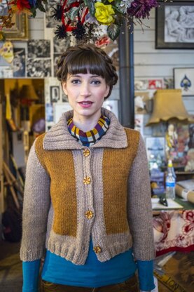 On Berroco Simultane, the easiest of intarsia panels elevate this neat little cardigan that is sure to be a wardrobe staple. Knit with Berroco Ultra Alpaca Chunky, this sweater is warm, cozy, and quick to knit on large needles too! Simultane is knit flat in pieces from the bottom up and seamed.