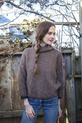 The stunning Coburg pullover is worked in a slip-stitch texture pattern featuring two colors of the warm and cozy Berroco Ultra Alpaca. The body is worked in the round from the bottom up, then the front and back are separated and worked back and forth in rows to the shoulders.