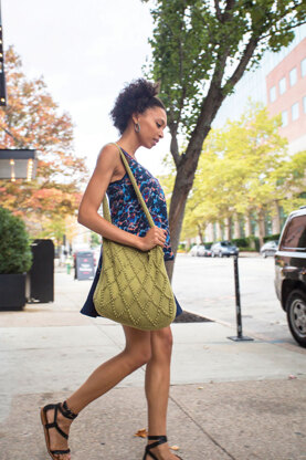 Berroco Susan is a fun bag with a funky diamond stitch pattern made of bobbles, which gives it a lot of interest and texture. It is worked in one piece and the sides are then seamed together. Note: diamond bobble pattern is charted only.