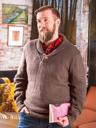 Berroco Ketch is wonderfully warm pullover with a shawl collar and a one button closure. Knit flat in pieces from the bottom up and seamed, Ketch calls for Berroco Vintage, a soft wool and acrylic blend yarn that comes in a wide range of colors and is easy to care for.
