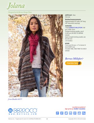 Berroco 377 Jolana PDF is a Knitting pattern by Berroco, available as a Downloadable PDF. Super fun to make, this pattern could be your next masterpiece!