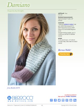 Berroco 379 Damiano PDF is a Knitting pattern by Amy Christoffers, available as a Downloadable PDF. Super fun to make, this pattern could be your next masterpiece!