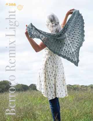 Simple texture and lace patterns take center stage in the shawls, sweaters, tops, and ponchos that make up Berroco #386 Remix Light. The six designs in this collection are inspired by Remix Light, a wool-free blend of recycled fibers with a tweedy look and a slight texture.