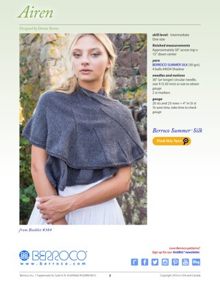 Berroco Airen PDF is a Knitting pattern by Donna Yacino, available as a Downloadable PDF. Super fun to make, this pattern could be your next masterpiece!
