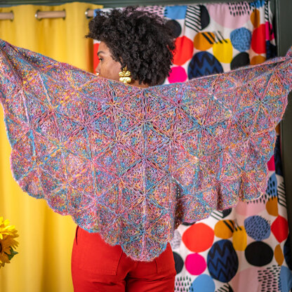 Berroco Alegria is a stunning shawl that is bursting with color and coziness. This seamless crochet project is worked in individual triangle motifs that are joined together on their last round. Multicolor Berroco Carousel is held together with soft, fluffy Aerial throughout this project, creating a finished shawl that is lightweight yet warm and has a fluffy halo. Choose Alegria for a project that's great to work on the go as you create the centers of the motifs, and then watch as it quickly transforms as you join them into a v-shaped shawl that stays on your shoulders and makes any outfit shine. Crochet instructions are both charted and written out.