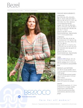 Cardigan: Shown in size 36½” with suggested 2–4” positive ease