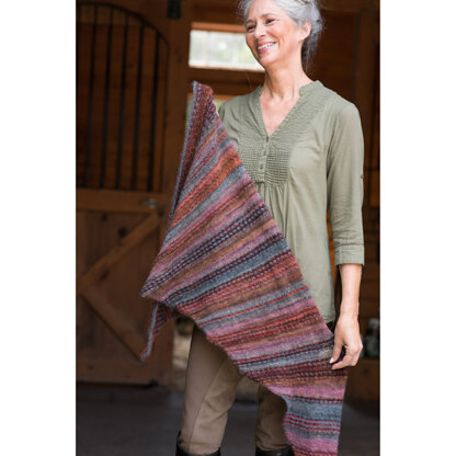 Berroco Broderie is an asymmetrical shawl that is started at the widest end and knits down to a point. Stripes are created with alternating colors of Berroco Millefiori Light and the yarn's self-striping colors. Lightweight with a beautiful drape you'll love having this wrapped about you!