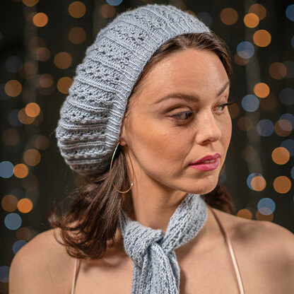 Berroco Celena is a beautiful accessory set with a beret and matching scarf knit with an approachable lace pattern for elegant finished projects. Both pieces are wearable nearly year round knit in Berroco Lucca, a soft cotton and cashmere yarn with crisp stitch definition and great drape. Celena’s projects are both seamless, with the scarf knit flat from end to end and the beret knit in the round from brim to crown with decreases integrated into the lace pattern. For enchanting accessories that can transition with you from day to evening with grace and style, Celena is just the pattern. Lace pattern is both charted and written out.