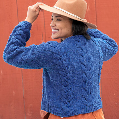 Cables take center stage in Berroco Courgette, popping against a reverse stockinette stitch background in this comfy drop-shoulder pullover. Courgette is knit flat in pieces from the bottom up and seamed to lend structure with a classic crew neckline and a modern cropped length. Remix Chunky makes your finished sweater wearable through much of the year with its tweedy, wool-free blend of recycled fibers, and it's a great choice for anyone who runs warm or is sensitive to wool. Pair Courgette with tanks and jeans or pop it over dresses or high waisted skirts—this versatile pullover will go wherever you do in style! Cable patterns are both charted and written out.