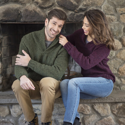 Eyre & Rochester from the Berroco 400 Mercado collection belong together just like Jane & Edward. This pair of shawl collared sweaters are perfect for the ski lodge or for curling up on a cold winter's night. Knit with Berroco Mercado, these sweaters will work up quickly and wear fantastically. Both sweaters are constructed in pieces and seamed together at the end.