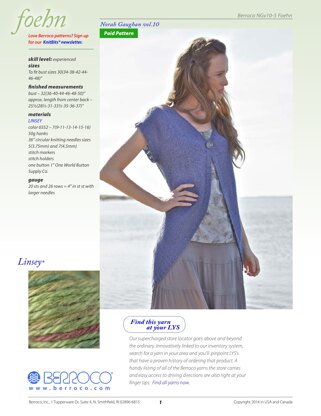 Berroco Foehn - Norah Gaughan Vol 10 PDF is a Knitting pattern by Norah Gaughan, available as a Downloadable PDF. Super fun to make, this pattern could be your next masterpiece!