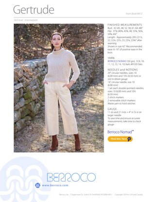 Berroco Gertrude PDF is a Knitting pattern by Berroco Design Team, available as a Downloadable PDF. Super fun to make, this pattern could be your next masterpiece!