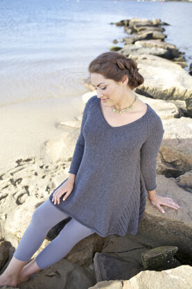 Gregale from Berroco is a simple yet elegant tunic-length pullover with a wide V-neckline and unique diagonal lace vents on the sides. Gregale is knit flat in pieces from the bottom up and seamed. Perfect for pairing with leggings or skinny jeans, Gregale will be comfortable to wear nearly year round in wool-free, cotton blend Remix yarn. Lace pattern is charted only.